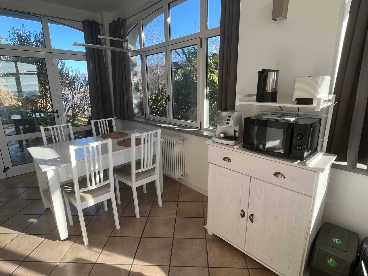 The accommodation is accessible in only 15 minutes by car from two motorway exits, the main train station Como San Giovanni or the train station in Chiasso / Switzerland. To Milan city center, to the airport Milano-Malpensa, and to Lugano / Switzerland one needs only about 30-35 minutes by car. The historical center of Como is about 10 to 12 minutes by car or taxi. The walk to the city, although theoretically not very far, is not recommended because of missing sidewalks. Instead, you can walk in 10-15 minutes to San Fermo with some typical cafes and restaurants which are mainly frequented by locals. The villa offers in the main house another fully equipped separate apartment with a kitchen, two bathrooms, and up to six beds (three bedrooms), which can also be booked through Airbnb or directly via our website. Please note that Villa Cardano has a huge garden and is located in the "Spina Verde" nature reserve. Therefore, there are naturally many animals around. We have equipped the two windows to the garden with fly screens. However, since the Studio is located on the ground level, we cannot completely prevent insects (spiders, ants, etc.) from entering the house. A travel baby bed and a high chair are available for one baby in the house on request. Please tell us right in advance to block and provide it for you and please bring your own bed linen for your baby. Como, like many other cities in Italy, charges a tourist tax which is mostly paid on-site directly to the host. Since we have code locks for self-check-in and I am not always present during your stay, the tourist tax is already included in the price of renting the apartment. This is to say that you do not have to pay extra while you are in Como. Please also check with other accommodations because most of them don't mention a tourist tax and later charge you on-site. However, as required in Italy, we ask all our guests to send us a copy of their identity documents to confirm their identity. We allow dogs in the studio, but we kindly ask that they not go onto the rooftop terrace, not onto the bed, and only be allowed on the sofa with a dog blanket. For further information about the house and your stay please visit our website. Just search for Villa Cardano in Como on the internet.